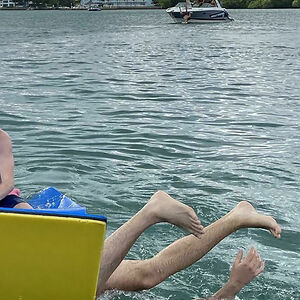 I Got A Pic Of My BF Falling Off A Floaty And Just Realized There Was A Guy Falling Off A Boat At The Same Time