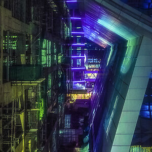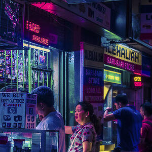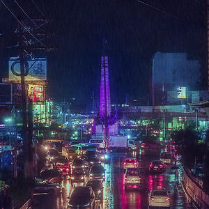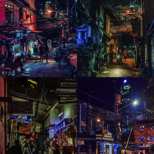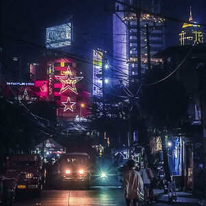 Cyberpunk Is Said To Be A Juxtaposition Of "High Tech" And "Low Life", Which Are The Themes I Try To Capture In Photography. This Was Taken At A Dark Unkempt Street In Guadalupe, Juxtaposed Against Bright Billboards And The High-Tech Megacorporate Development Known As "Cybergate City" In The Background