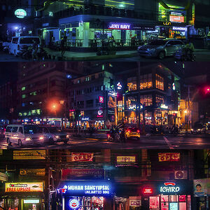 A Collage Of Three Panoramic Street Scenes At Sampaloc, Showing Its Wide Variety Of Venues For Student Nightlife