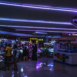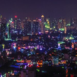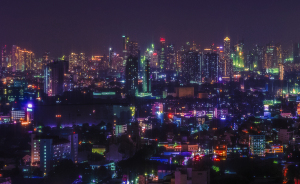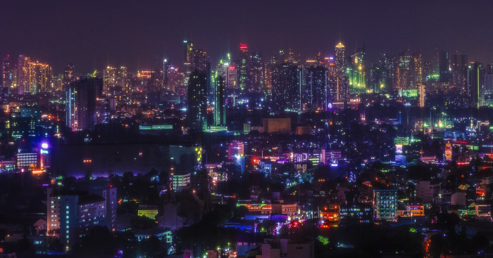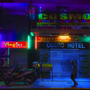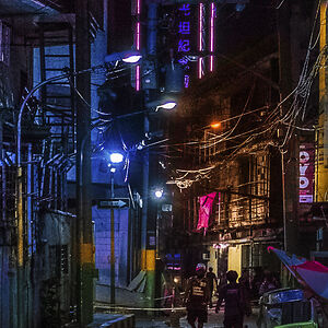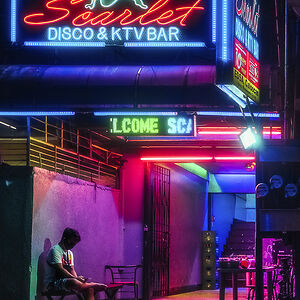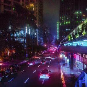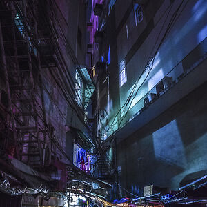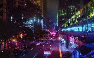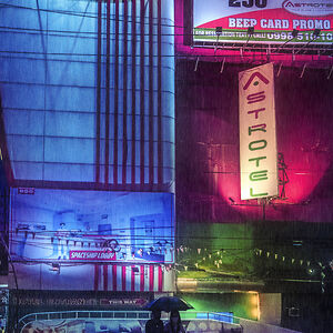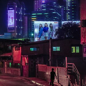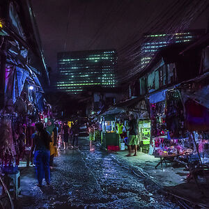 Cyberpunk Is Said To Be A Juxtaposition Of "High Tech" And "Low Life", Which Are The Themes I Try To Capture In Photography. This Was Taken At A Dark Unkempt Street In Guadalupe, Juxtaposed Against Bright Billboards And The High-Tech Megacorporate Development Known As "Cybergate City" In The Background
