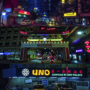 Three Panoramas In Neon-Lit Binondo, Which Is Manila's Historic Chinatown. A Melting Pot Of Multicultural Architecture