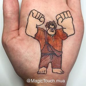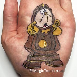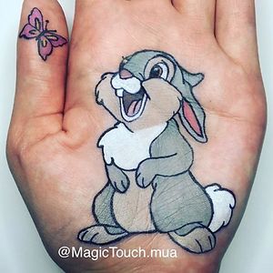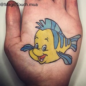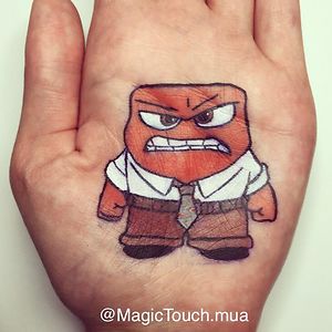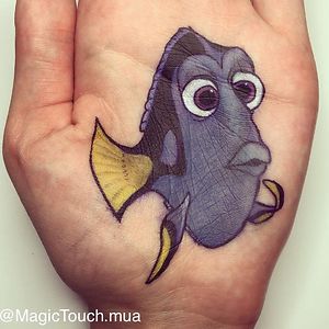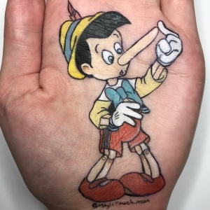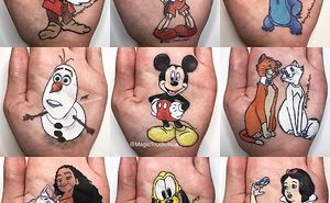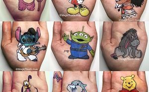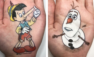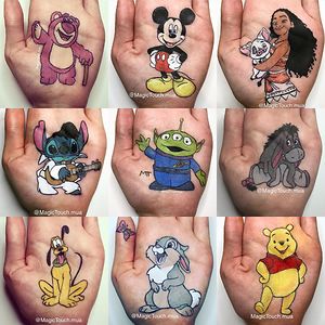 I draw cartoon characters on the palm of my hand with make up/ body art.