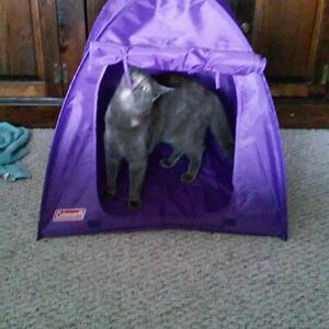 This Officially Licensed, Miniature Coleman Tent--Meant For Use With American Girls Dolls, But Which My Cat Is Now Using As An Hq To Plot World Domination.