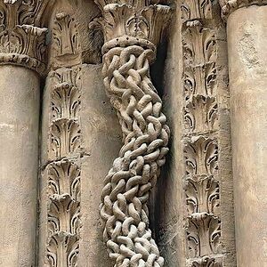 Carved Stone Chain Link Column Dating Back To 1106. Found On The Facade Of The Collegial Saint-Lazare D’avallon In France