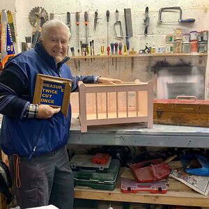 Dad Loved His Present. Here He Is In His Little Workshop With A Cot He’s Made For My Granddaughter