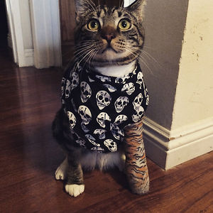 My Cat Jumped Through A Third Story Window And Broke His Leg. Here He Is Looking Brave With His Tiger Cast And Pirate Bandana