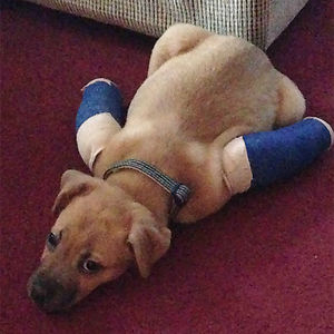 My Rescue Pup Day One Of Getting Used To His Casts. Just Three Days Later He Started Running And Climbing Stairs