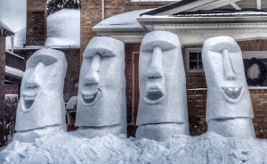 I make 8' tall snow sculptures in my front yard usually with non-packing snow! I live in Waterloo, Ontario. But only after a good snowfall. Later they melt away.