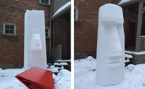 I make 8' tall snow sculptures in my front yard usually with non-packing snow! I live in Waterloo, Ontario. But only after a good snowfall. Later they melt away.
