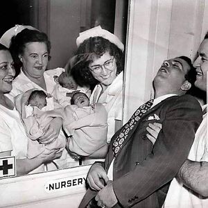 Nurses Showing A Set Of Newly Born Triplets To A Surprised Father In A New York City Hospital, 1946. Photo By Keystone-France