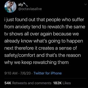 This Makes So Much Sense. The Feeling Of Regularity And Knowing What Comes Next Gives Me A Feeling Of Peace. whats Your Comfort Show? mine Is @bobross_thejoyofpainting .... @octaviasalive . . . . . #anxietyawareness #anxietysupport #mentalhealth #mentalhealthadvocate #bobrosspainting #youtubeaddict #asafeplaceinsideyourhead