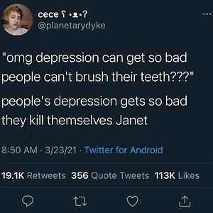 Tw: Suicide we Understand Suicide Is Not A Joking Matter. Neither Is Depression Or Any Mental Health Issue You May Be Battling Today. people Still Don’t Have A Good Grasp On The Depth Of The Energy It Takes To Fight Our Mental Health Issues Every Day. If It Isn’t Happening To Them It Just Isn’t Real. if You Got Up Today And All You Manage To Do Is Brush Your Teeth, That’s Ok. Hang In There Warrior! if You Are In Austin Tx Reach Out To The Mental Health Hotline 512-472-Help Or Nationally 1-800-273-Talk Or Text Home To 741741 normalise Talking About Mental Health. @planetarydyke 📸 Via Twitter . . . . . #mentalhealthmatters #mentalhealthmemes🖤 #depressionisreal #depressionawareness #anxietyawareness #suicideawarness #suicideprevention #stopsuicide #suicidehotline