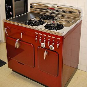The Best Piece I Ever Got ! 1950s Chambers "B " Range In Candy Apple Red. Dutch Oven Cooking Allows Baking With The Gas Turned Off Holding Temperature For Almost 2 Hours