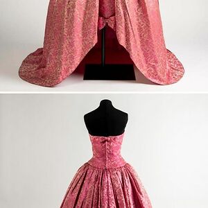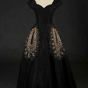 Button Front Black Silk Faille Ball Gown With Contrasting Bright Pink Silk Lining Designed By Pierre Balmain, Circa 1950