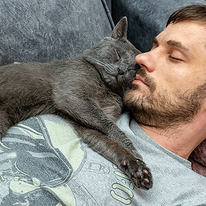 He lets our elderly cat sleep under his arm every night because “it’s her routine” even though it often pains his shoulder.