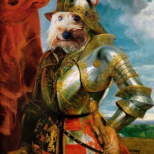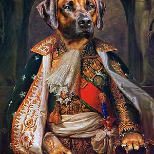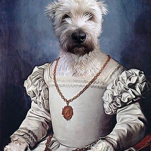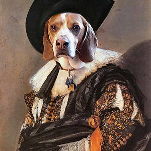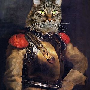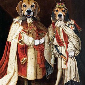 Through the magic of Photoshop I give dogs & cats the royal treatment, blending photos with renaissance paintings - I transform dogs & cats into Jesters, Kings, Queens, Beggars, Knights and more...