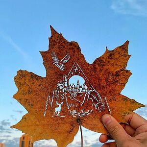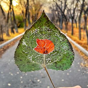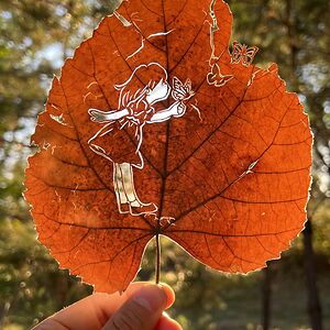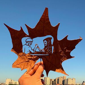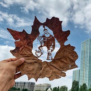Paper and leaf cutting artist
