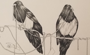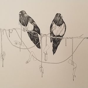 Printmaking, drawing, painting, and collage.