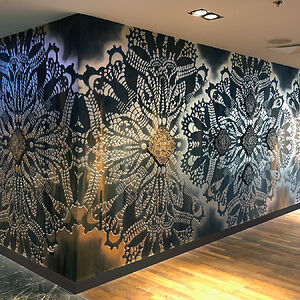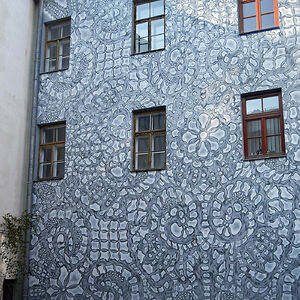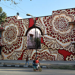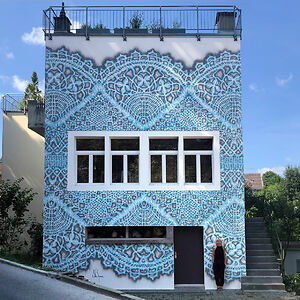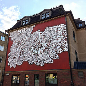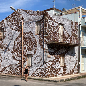 I create works that are somewhere in between street art, pottery, painting and sculpture. Most of my work consist of prints of traditional laces, made in clay or painted on the walls.