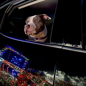 My Wife And I Don’t Have Kids Yet So We Take Our Dog Out To Look At The Lights. He Absolutely Loves It