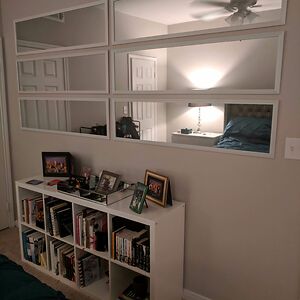 Girlfriend And I Wanted A Large Mirror On Our Wall, But Didn't Want To Spend $$$ So We Found 6 Small Closet Door Mirrors On Sale For $4 Each