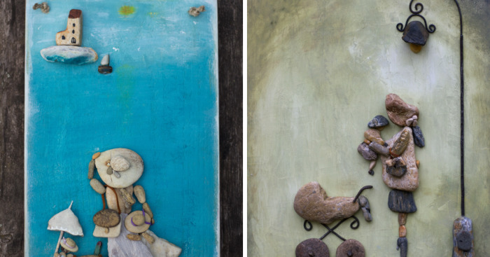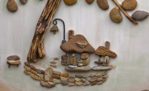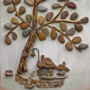 I'm a stone artist. I am making pictures using stones, paint, wood and imagination.