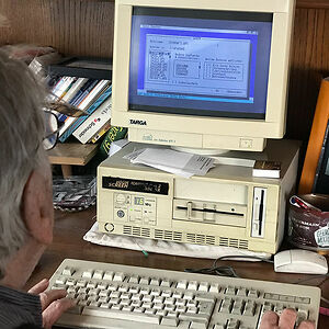 Grandpa Still Uses A Decades Old Computer That Still Runs Dos, Typing And Printing And Storing Things On Floppies