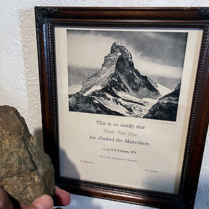 A Summit Rock From The Matterhorn (Swiss/Italian Alps), 14,690 Feet, From When I Climbed It At Age 19 In August Of 1974. The Certificate Is From The Guide Association Of Zermatt
