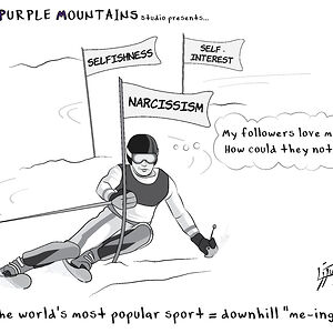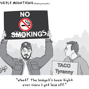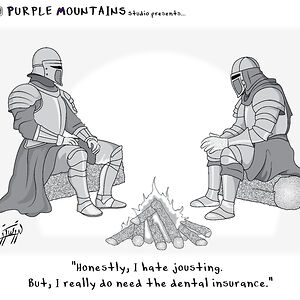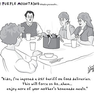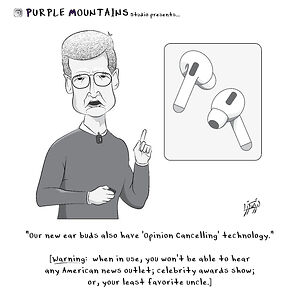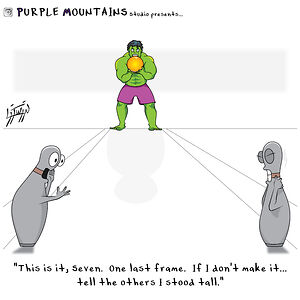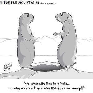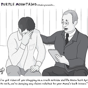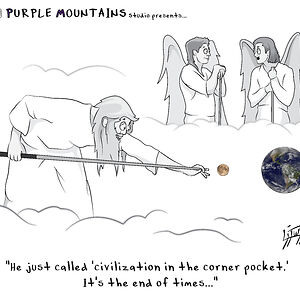 Purple Mountains Studio takes its name from the iconic lyric in America the Beautiful: “For purple mountain majesties, above the fruited plain.” As a general humor cartoon that is not afraid to dip into editorial territory, Purple Mountains captures quirky, heartfelt, and sometimes sharp slices of Americana—highlighting the culture, contradictions, and characters that make up the American experience.