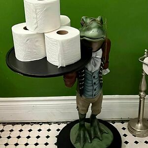 Picked Up This Dapper Guy Today From Our Local Buy And Sell, Set Him Up In Our Bathroom To Hold Extra Tp Then Waited For My Husband To Come Home 😂 Frog Butler, He’s So Fancy