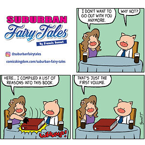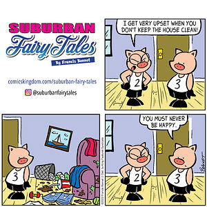 I'm a cartoonist who writes and draws a syndicated comic strip called Suburban Fairy Tales.