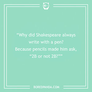 Why did Shakespeare always write with a pen? Because pencils made him ask, “2B or not 2B?”