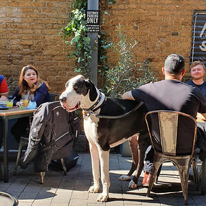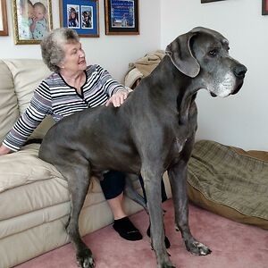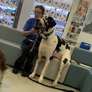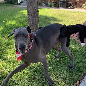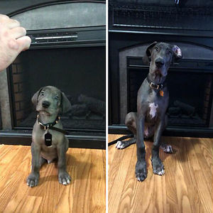 Our Neighbor Sent Me This Adorable Display Of Pure Joy Between Our Dogs. They Finally Got Him A Stool So He Could Greet His Big Friend Properly