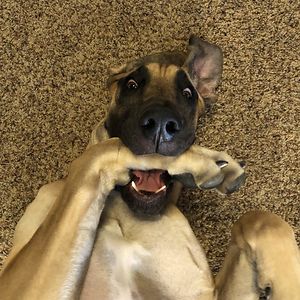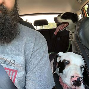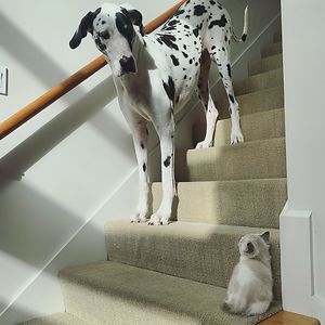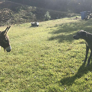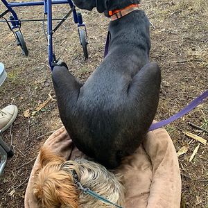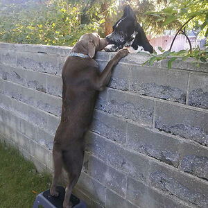 Our Neighbor Sent Me This Adorable Display Of Pure Joy Between Our Dogs. They Finally Got Him A Stool So He Could Greet His Big Friend Properly