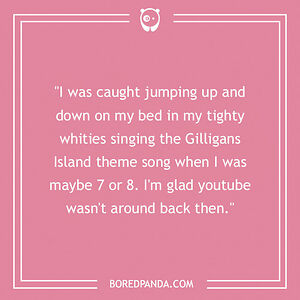 "I was caught jumping up and down on my bed in my tighty whities singing the Gilligans Island theme song when I was maybe 7 or 8. I'm glad youtube wasn't around back then."