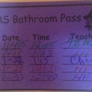 This Is My Daughter's Bathroom Pass. The Students Can Use The Bathroom (During Class) 5 Times During The 9 Weeks. After The 5th Time, The Student Gets Detention