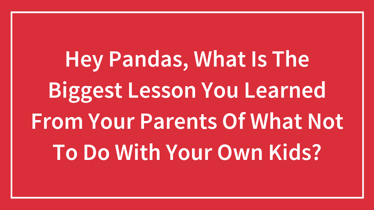 Hey Pandas, What Is The Biggest Lesson You Learned From Your Parents Of What Not To Do With Your Own Kids?