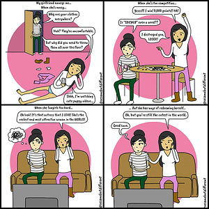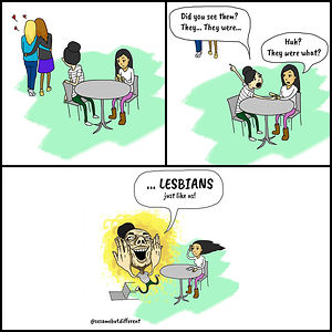 Hello! I’m a full-time lesbian and part-time (but hoping to fully commit one day) artist who is responsible for creating Sesame But Different, a lesbian slice of life webcomic that depicts my #lesbianlife with my girlfriend.