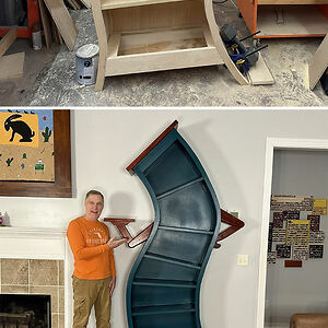 I Built An 8-Foot Tall Whimsical Bookcase From Plywood, Lauan, Poplar, And Padauk. This Was A Fun Build And My Wife Absolutely Loves It! Build Link In Comments