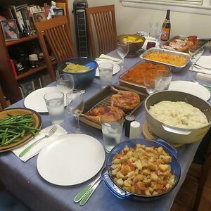 1st Thanksgiving with the inlaws. Everything so dry and overcooked. Dry dry dry turkey. Dressing so overbaked it was hard & crusty (not in a good way). Mashed potatoes without enough milk or butter so they were stiff. Gravy very thick and gloppy so it didn't help at all. Over-boiled veggies swimming in grease. Cheap store-bought pies. Fortunately we left half way through when they started the god-talk/gay bashing. Never went back. F**k 'em.