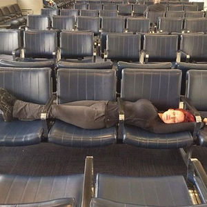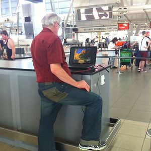 My Buddy Spotted This Guy At The Airport On The Moving Walkway, Sitting In A Chair, Eating McDonalds While Catching Pokemon