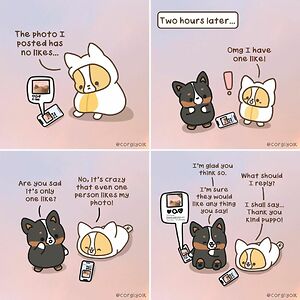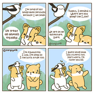 Corgiyolk, a webcomic created by Sonia Yeo, creates empathy through a series of heartwarming comics about a lovable corgi character.