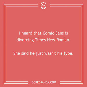 I heard that Comic Sans is divorcing Times New Roman. She said he just wasn't his type.