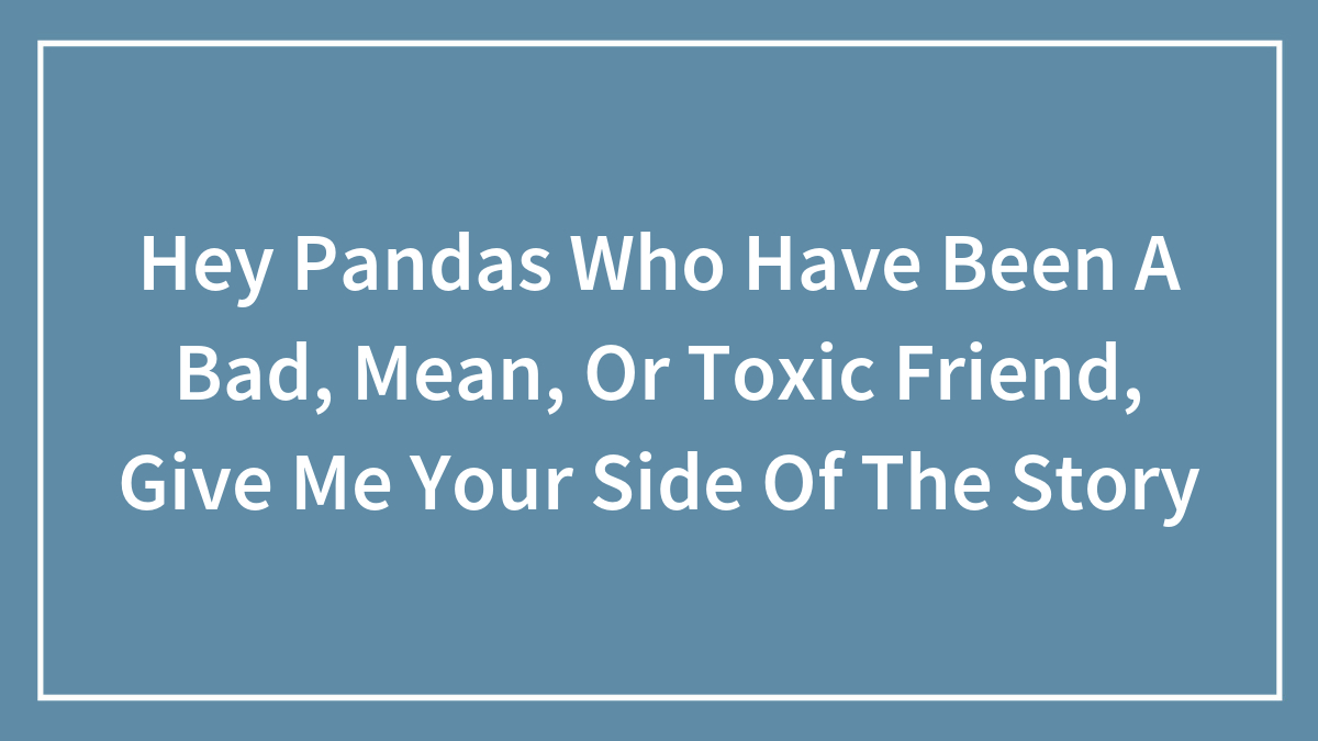 Hey Pandas Who Have Been A Bad, Mean, Or Toxic Friend, Give Me Your Side Of The Story (Closed)
