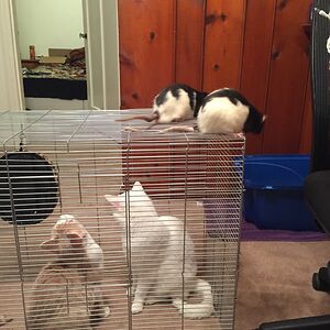 Luna Trying To Steal A Treat From Blondie...while Ignoring All Of The Available Treats In Front Of Her