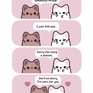 Hi there! My name is Kat. I am a rather introverted artist who is just trying to find joy in the world by drawing cute cats and their happy lives together.