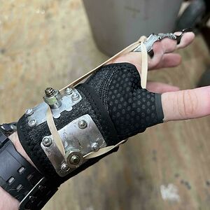 Cut A Nerve And Lost 1/3 Mobility In My Finger. This Frankenstein Prosthetic My Dad And I Made Helps Me Regain Most Of It Back