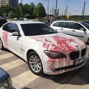 Half On Disabled Parking And A Half On The Passway To A Mall. Someone Got Really Pissed And Emptied A Jar Of Jam On It