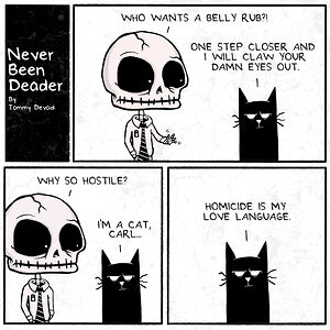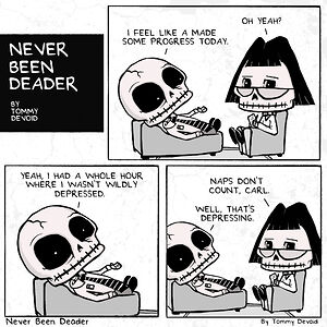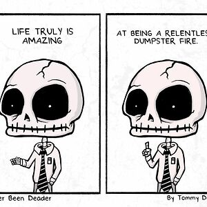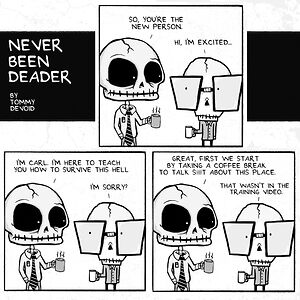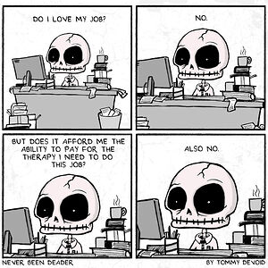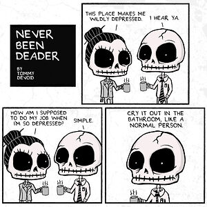 HI! I am Tommy Devoid and I create skeleton artwork. I hope you find my artwork relatable and perhaps sometimes funny.