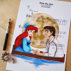 I Draw Scenes From Famous Animated Movies On Music Sheets Of Their Theme Songs